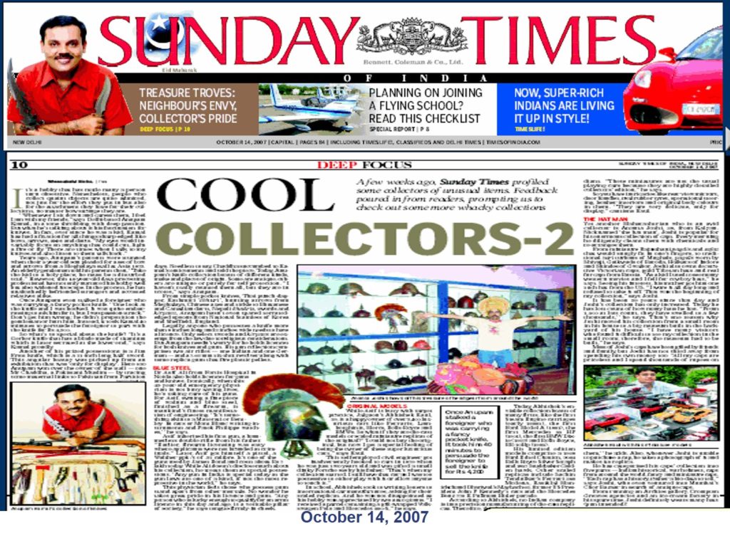 - Machirologist & Blade Collector – National Record holder in Limca Book of Records for India’s largest collection of knives