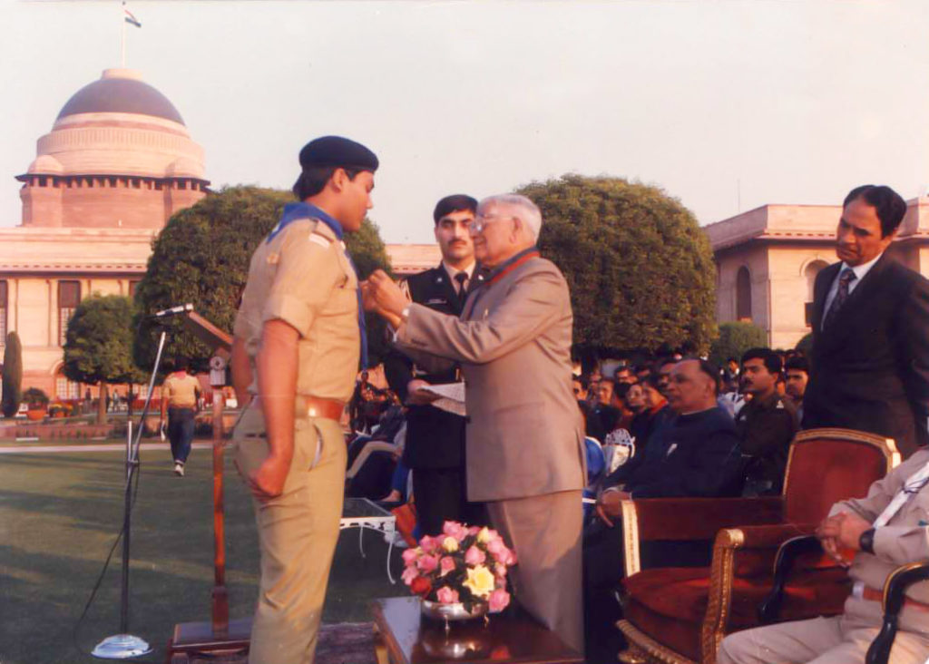 As a young adult, I immersed myself in training across rescue services, fire-fighting, first aid, weapons handling, and wireless radio communications – skills that would shape both my passion and my calling. In time, Outlook magazine fittingly dubbed me an “Altruist-at-Arms” in their feature titled Local Heroes. Fortunately, on several occasions, I was in positions where I could save lives, often putting my own at risk. For these acts of service, I was honoured with multiple awards for gallantry. The most humbling of them all came when the President of India, Shri R. Venkataraman, personally pinned a Gallantry Medal on my chest at the Rashtrapati Bhawan – a moment of pride and quiet gratitude I will carry forever.