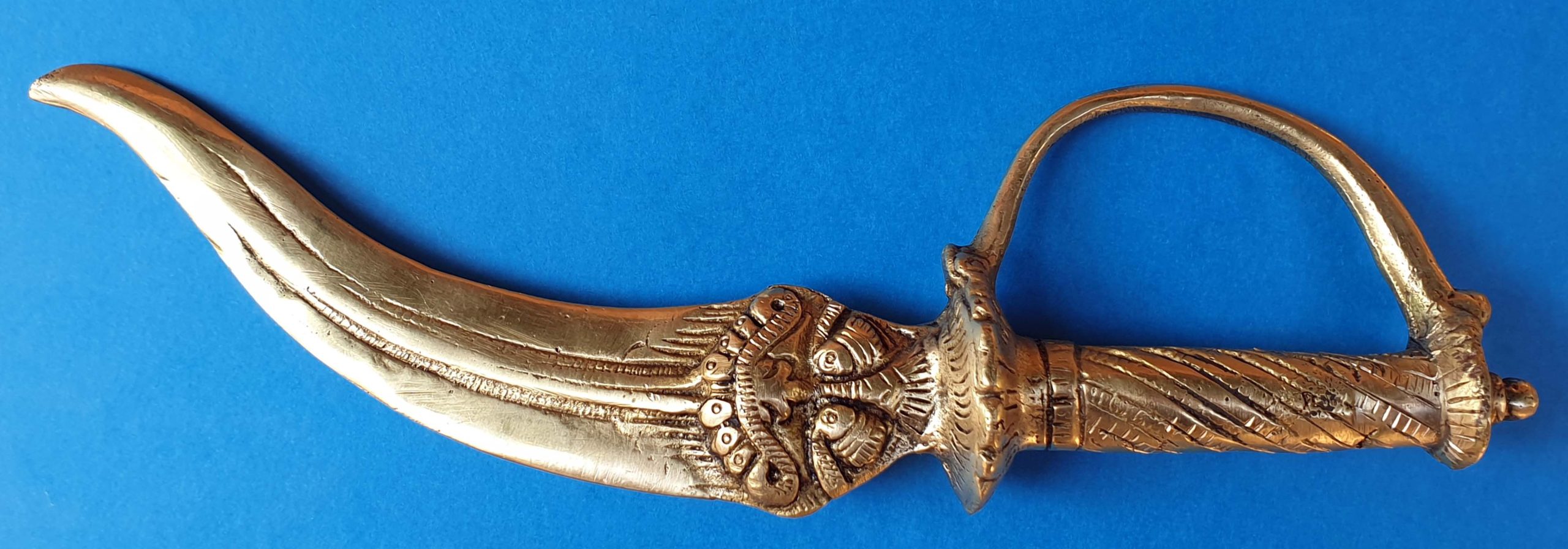Closely associated with the Sikh religion, the historical connection of the Kirpan dagger began with the religious commandment of Guru Gobind Singh in 1699, when it was included as one of the five items of Sikh identity – the five Ks, along with Kangha, Kachha, Kara and Kesh. This Punjabi word, Kirpan, has two roots: ‘kirpa’, meaning mercy, grace, or compassion; and ‘aanaa’ meaning honour, or dignity. It is a designated wearable side-arm to be used for self-protection and also to defend others in danger.