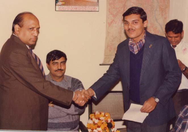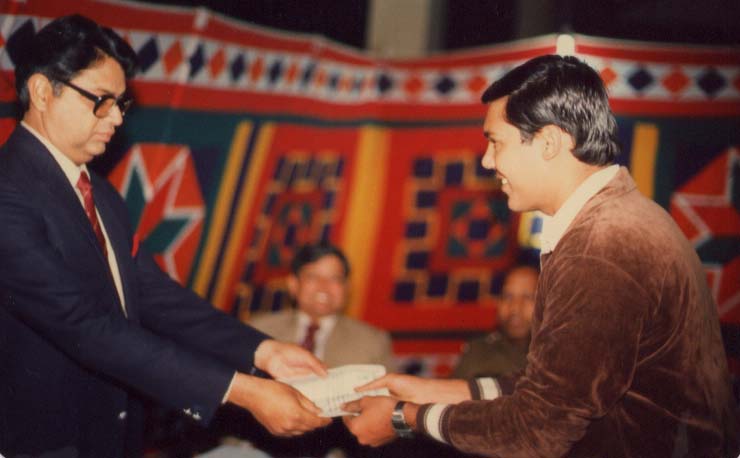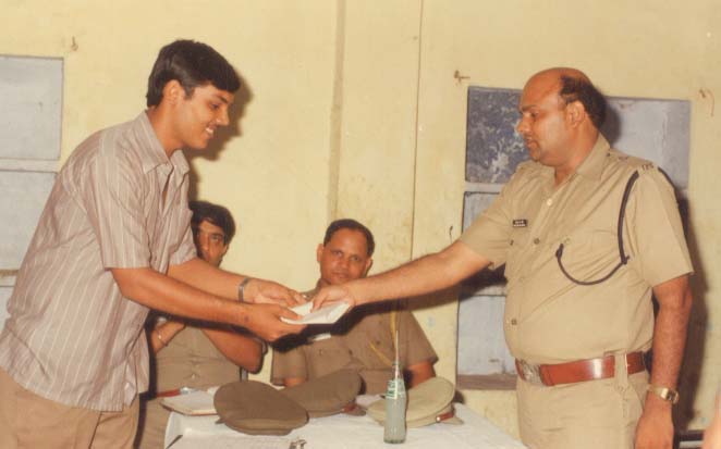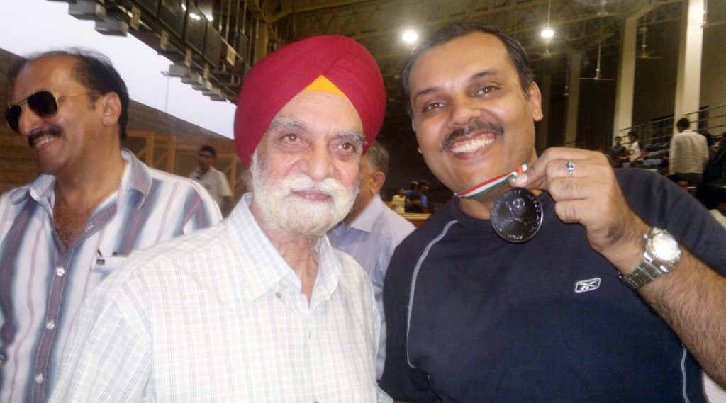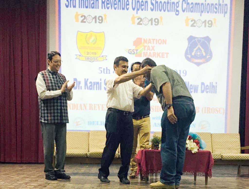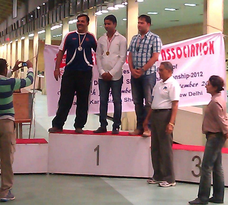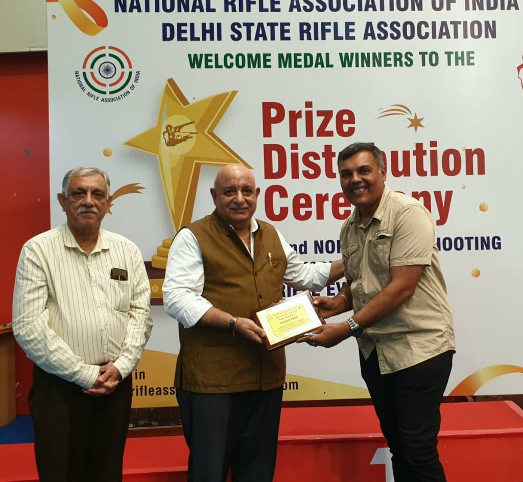 Receiving a Bronze Medal in the North Zone Shooting Championship in pistol events from Shri Baljeet Singh Sethi, Secretary-General, National Rifle Association of India.