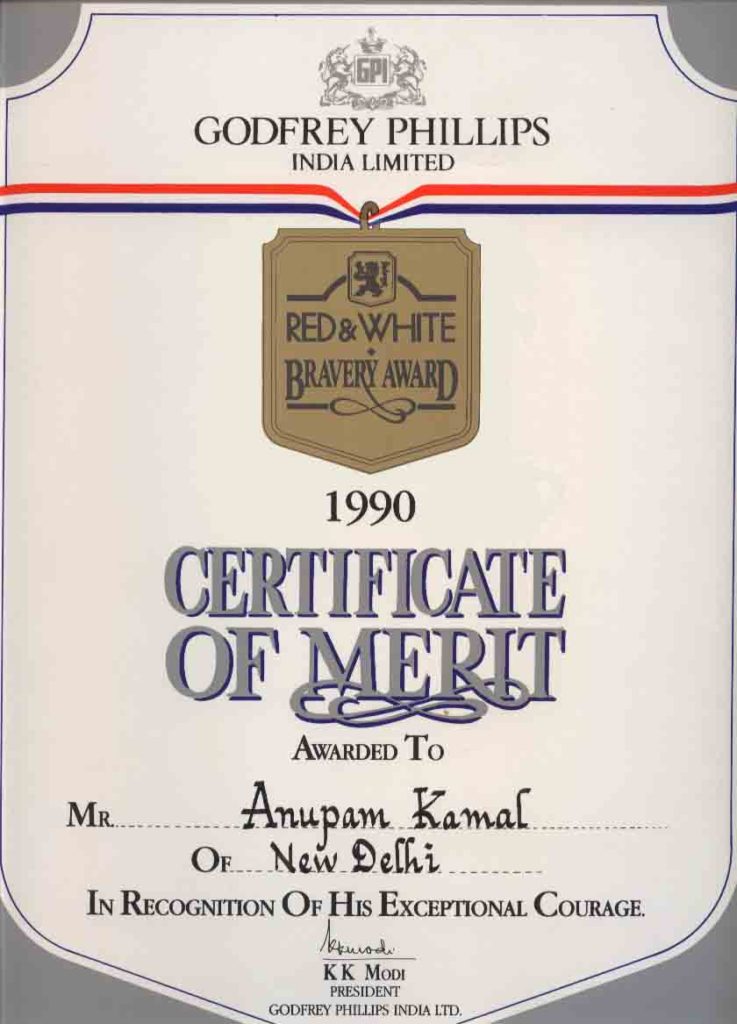 Mr R Venkataraman, President of India pinning the Gallantry Medal.
