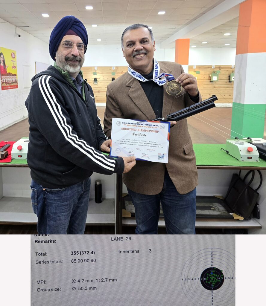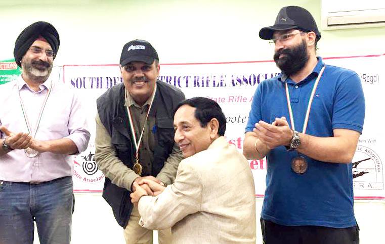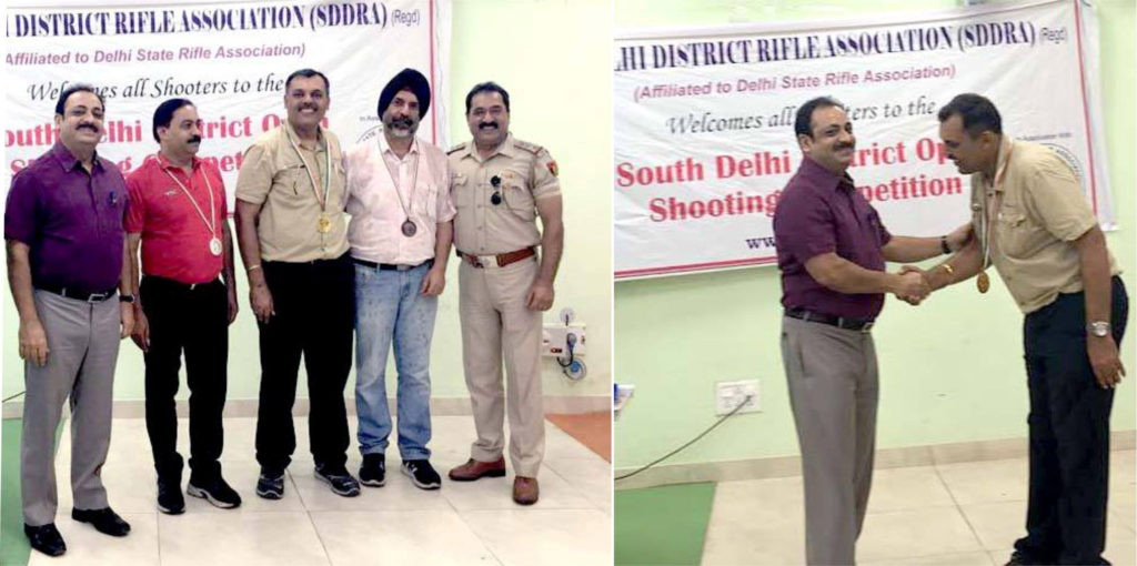 Silver Medal in 10m Pistol event at the 4th South Delhi District Open Shooting Competition 2019. Giving away the NAGRI Cup to winners as President of South Delhi District Rifle Association.