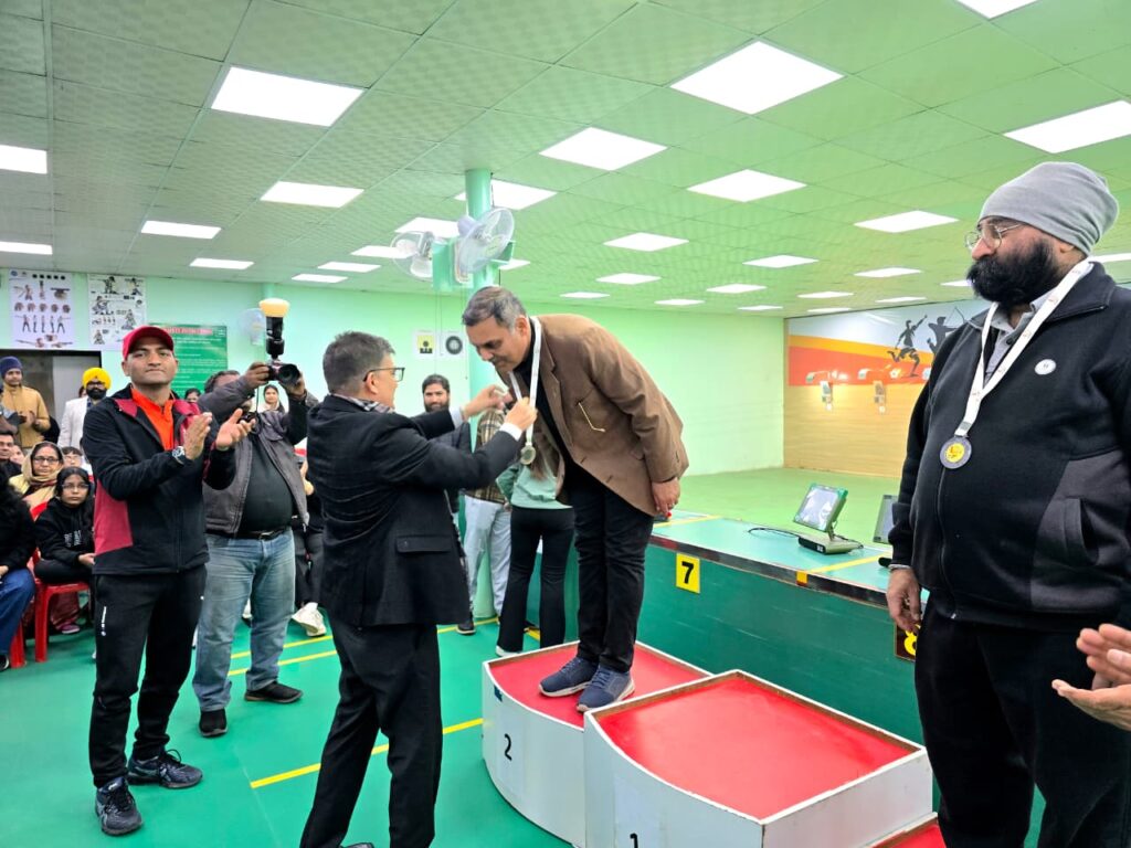 Gold Medal in 10m Pistol event at the 1st South Delhi Distt. Open Shooting Competition-2018 from Shri NS Rana, a sports veteran and former Sports Minister of Uttarakhand, Shri Santosh Pal, Leader of the House, East Delhi Municipal Corporation; and Ms Chhaya Adak, Arjuna Awardee.